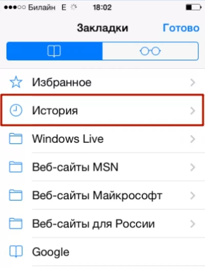 Где история на Айфоне