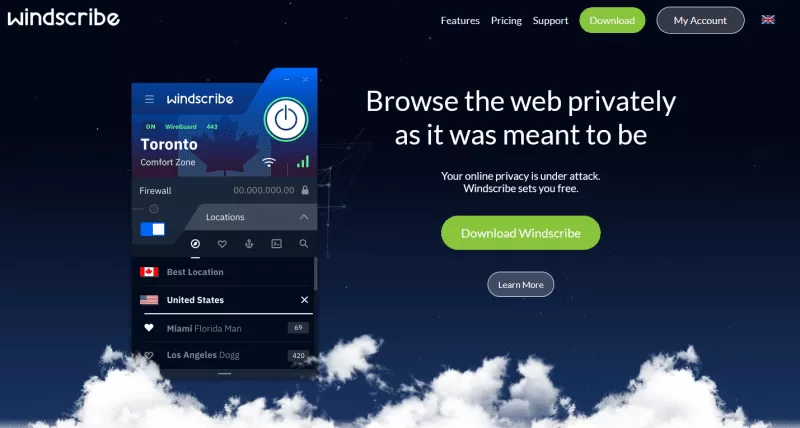 Это относительно молодой VPN-сервис из Канады. Он может похвастаться довольно большим выбором серверов по всему мир (увы, только в платной версии) и настраиваемым блокировщиком рекламы, получившим название R.O.B.E.R.T. Windxcribe не сохраняет логи и использует 256-битное AES-шифрование для обеспечения защиты пользовательских данных. Приятной особенностью является обход блокировок практически любых стриминговых сервисов. Более того, Windscribe даже оказался способен обойти "Великий китайский файрвол". К недостаткам сервиса можно отнести относительно невысокую скорость соединения на большинстве доступных серверов.