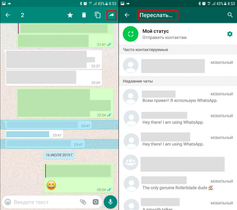 Чтобы переслать весь чат