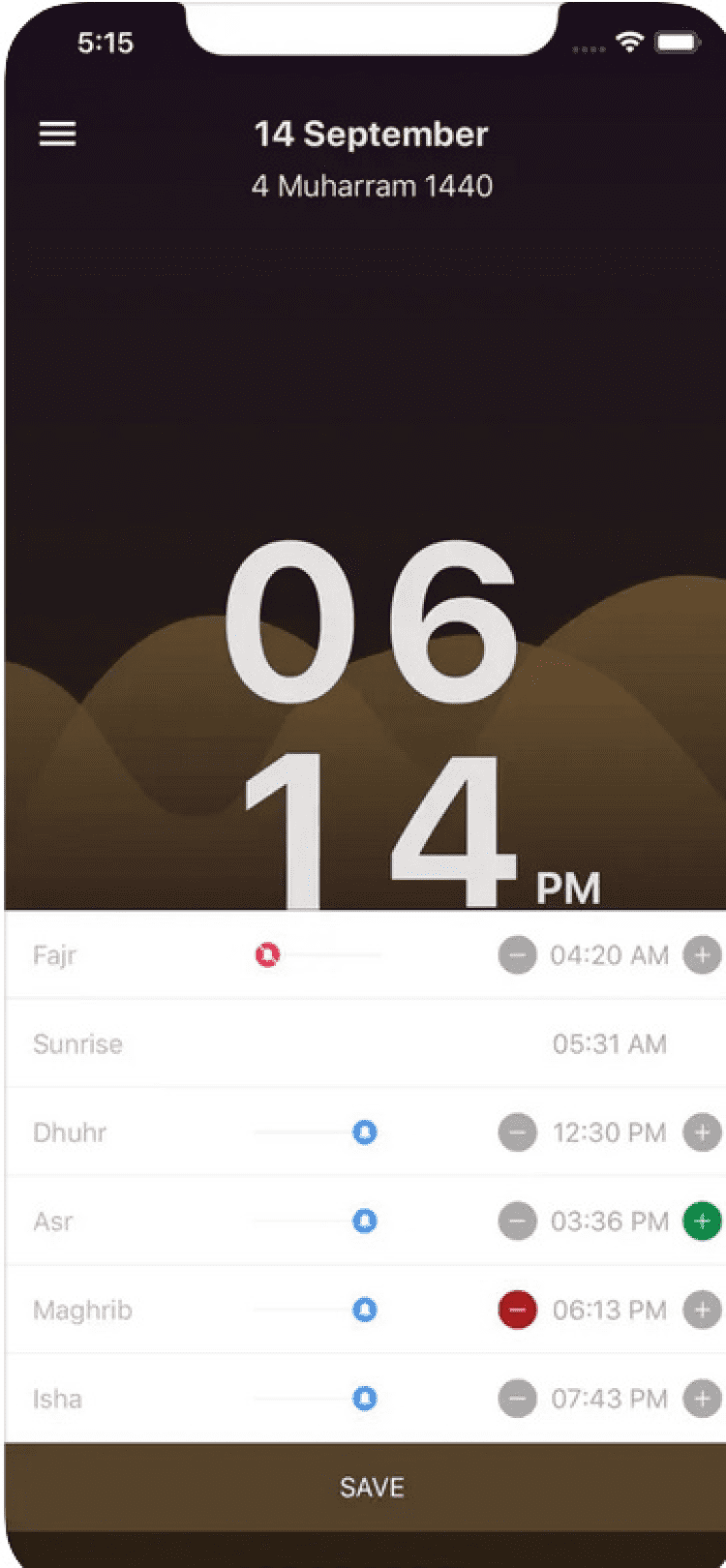 - будильники на Фаджр и Тахаджуд;