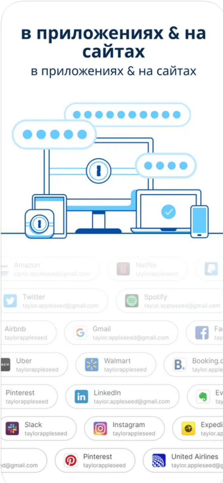 1Password позволит вам заходить на сайты, не запоминая паролей от них. Сохраняйте в приложении логины и пароли от сайтов, чтобы в любой момент быстро авторизоваться на них всего в один клик.