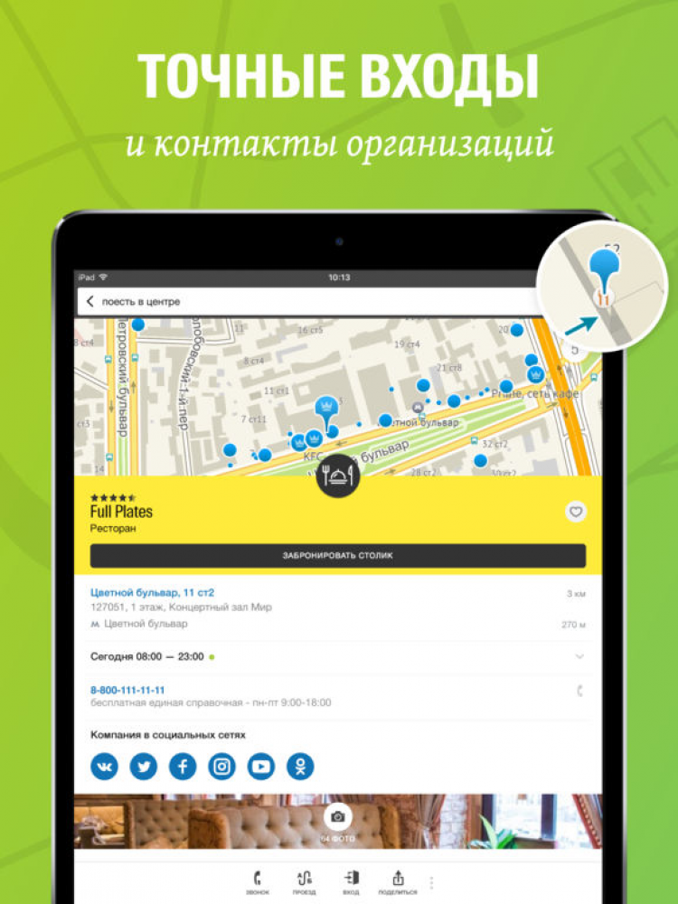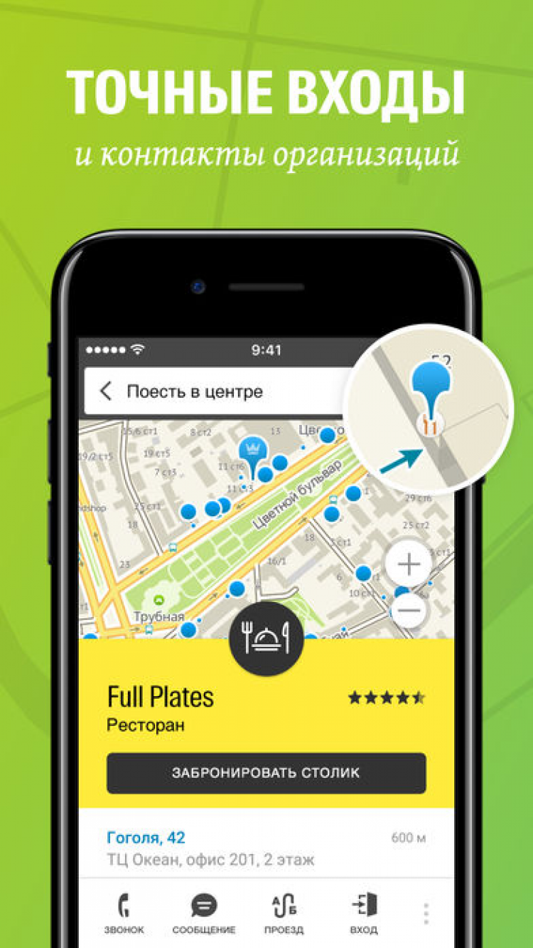 Приложение 2ГИС всегда предоставляет самую актуальную информацию по фирмам города. Это возможно благодаря регулярному обновлению карт и базы данных. Также, при помощи программы вы сможете не только найти точные адреса филиалов нужной вам фильмы, но и график их работы и где расположен вход в него на карте, а так же ознакомиться с отзывами других посетителей.