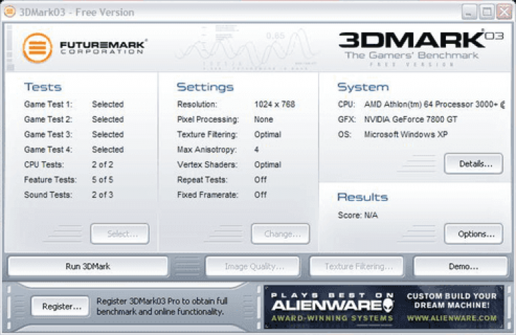 Обратите внимание, что 3DMark 2003 является устаревшей и может работать некорректно на современных операционных системах и новом "железе". С другой стороны, ключ для разблокировки полной версии программы теперь можно получить совершенно бесплатно, посетив официальный сайт.