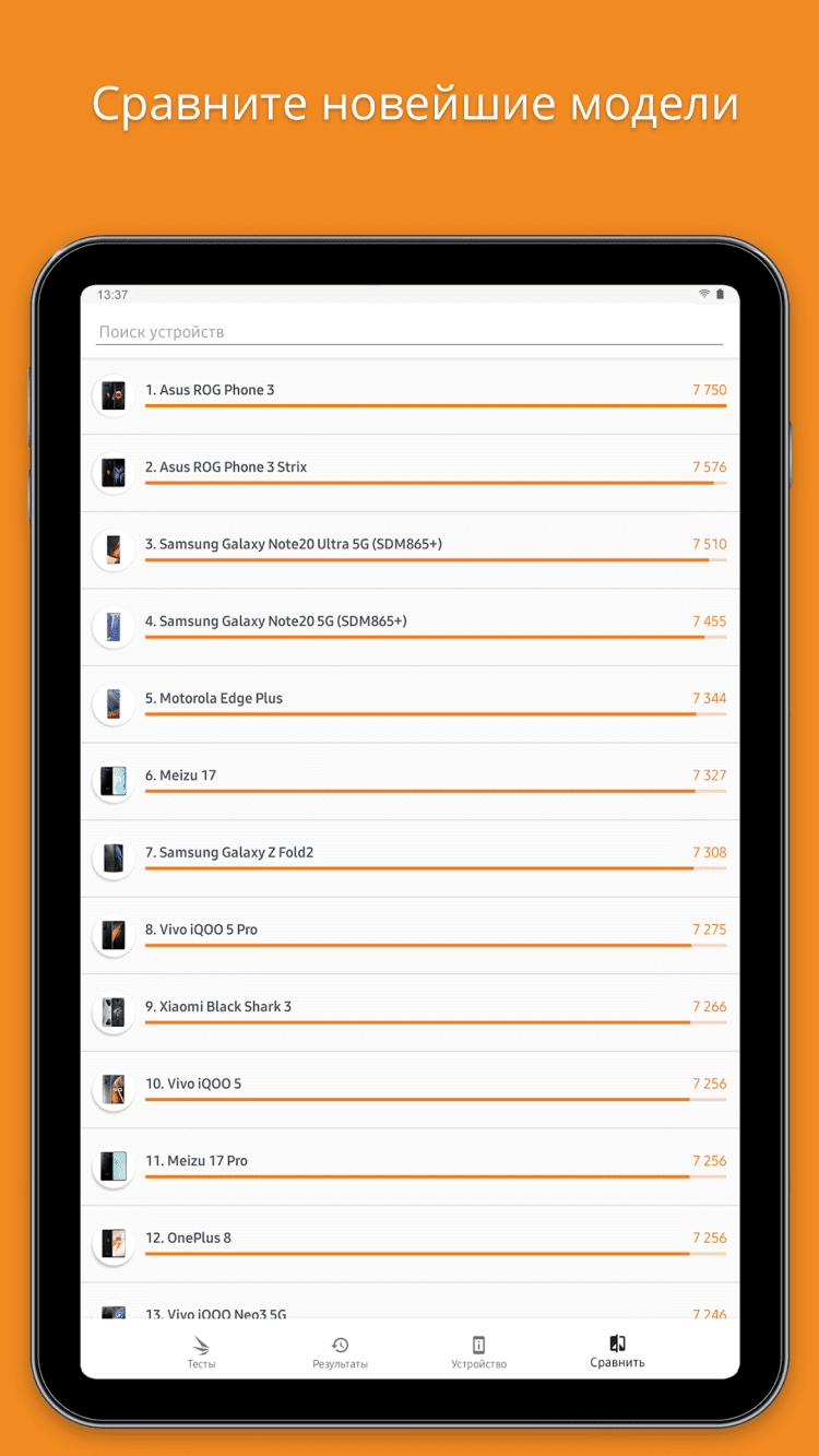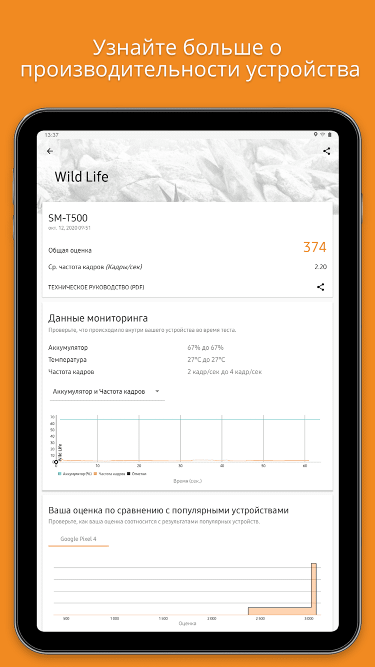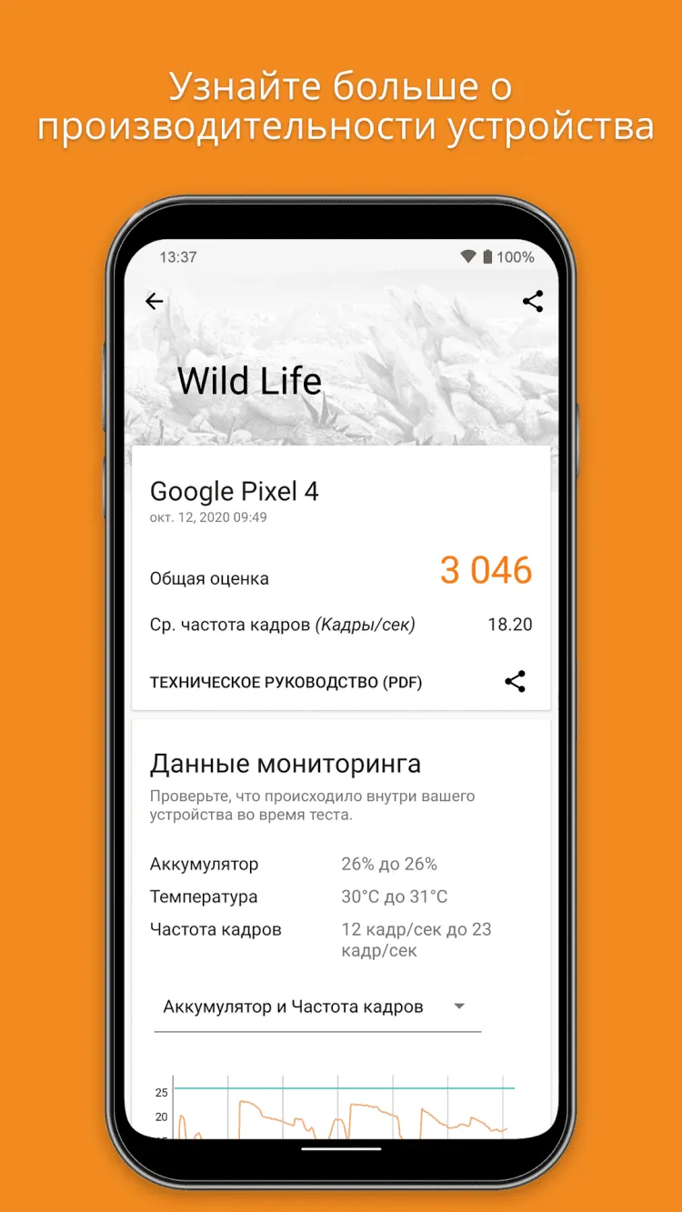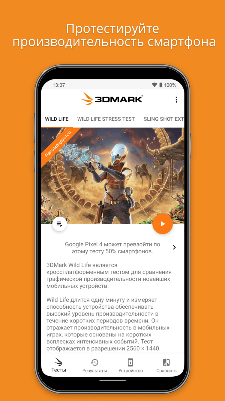 3DMark Удобная программа для получения детальной информации о производительности вашего Android-гаджета. Она позволит вам запустить тесты для проверки центрального и графического процессоров своего устройства и получать не только оценку,но и уникальные графики и рейтинги, с помощью которых вы сможете сравнить свой гаджет с другими популярными моделями.