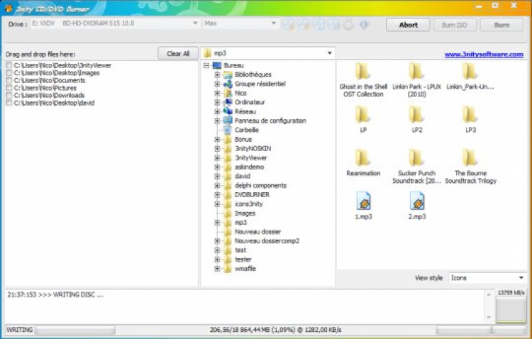 3nity CD DVD Burner предлагает широкий набор функций для работы с дисками: