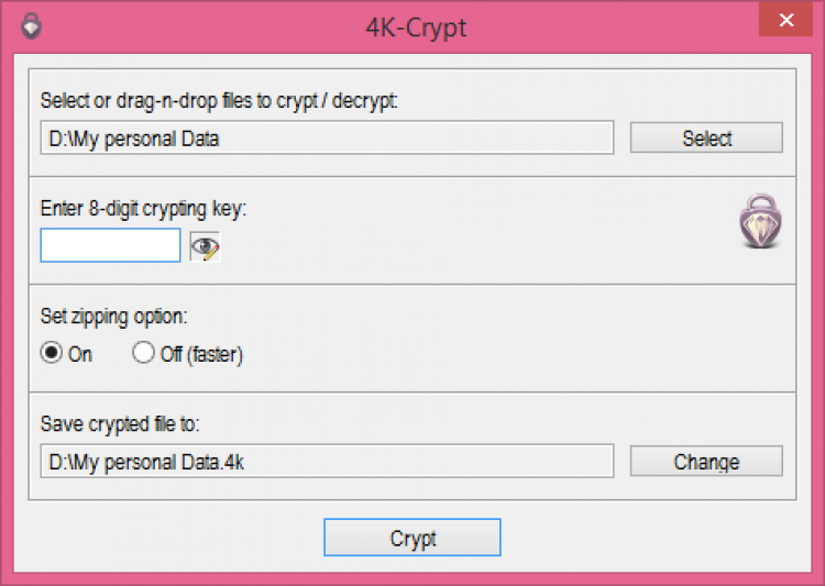 4K-Crypt - использует библиотеку криптозащиты и электронной подписи стандарта ISO-8730 для криптования данных. Данная утилита проста в использовании и предназначена для архивирования и обеспечения конфиденциальности хранимой или передаваемой информации.