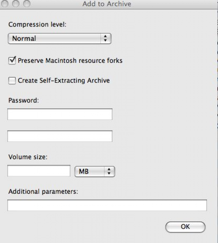 7zX Бесплатный архиватора с высокой степенью сжатия. 7zX поддерживает многие известныетипы архивов, такие как: TAR, ZIP, GZIP, BZIP2, UNIX compress, 7z, S7z. Эта программа крайне проста в обращении. Просто перетащите нужные файлы в ее окно чтобы начать архивирование. Перед началом нужно будет выбрать степень сжатия и задать (если нужно) пароль. И архив готов.