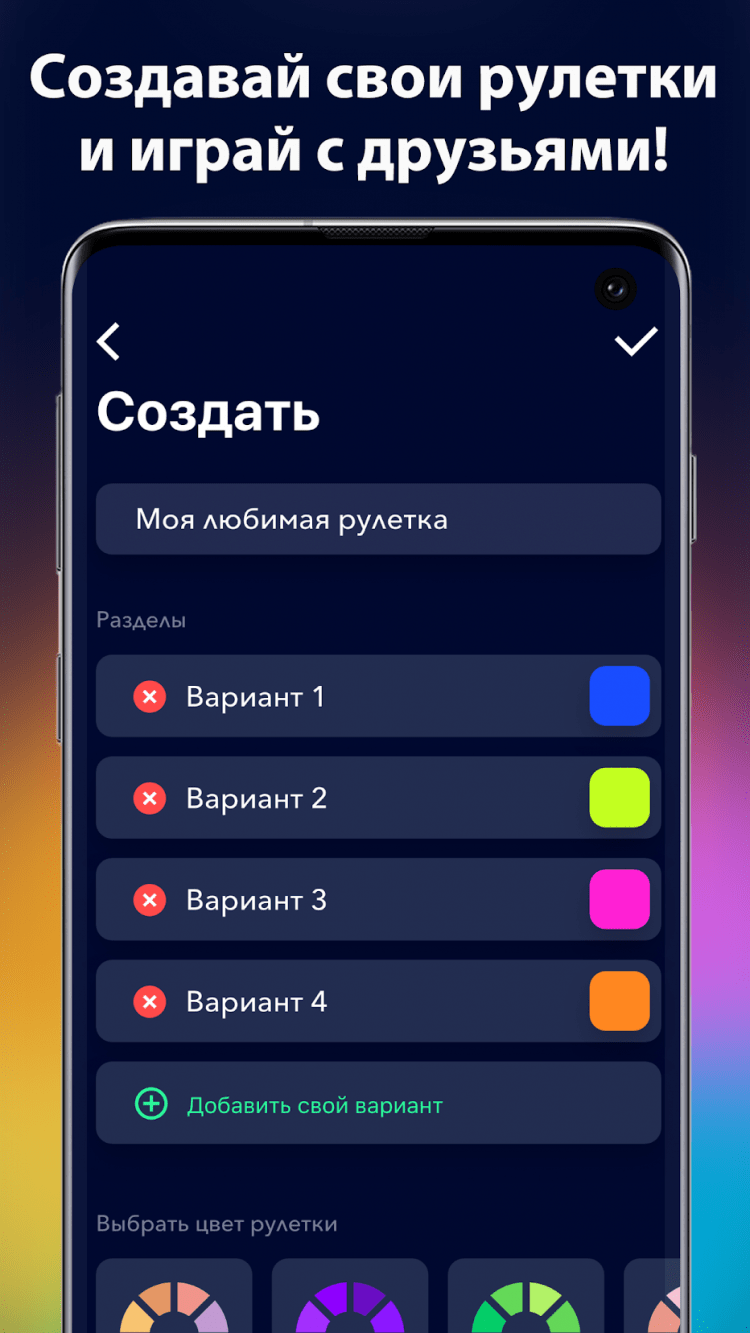 - колесо фортуны с возможностью создания своих тематических рулеток;