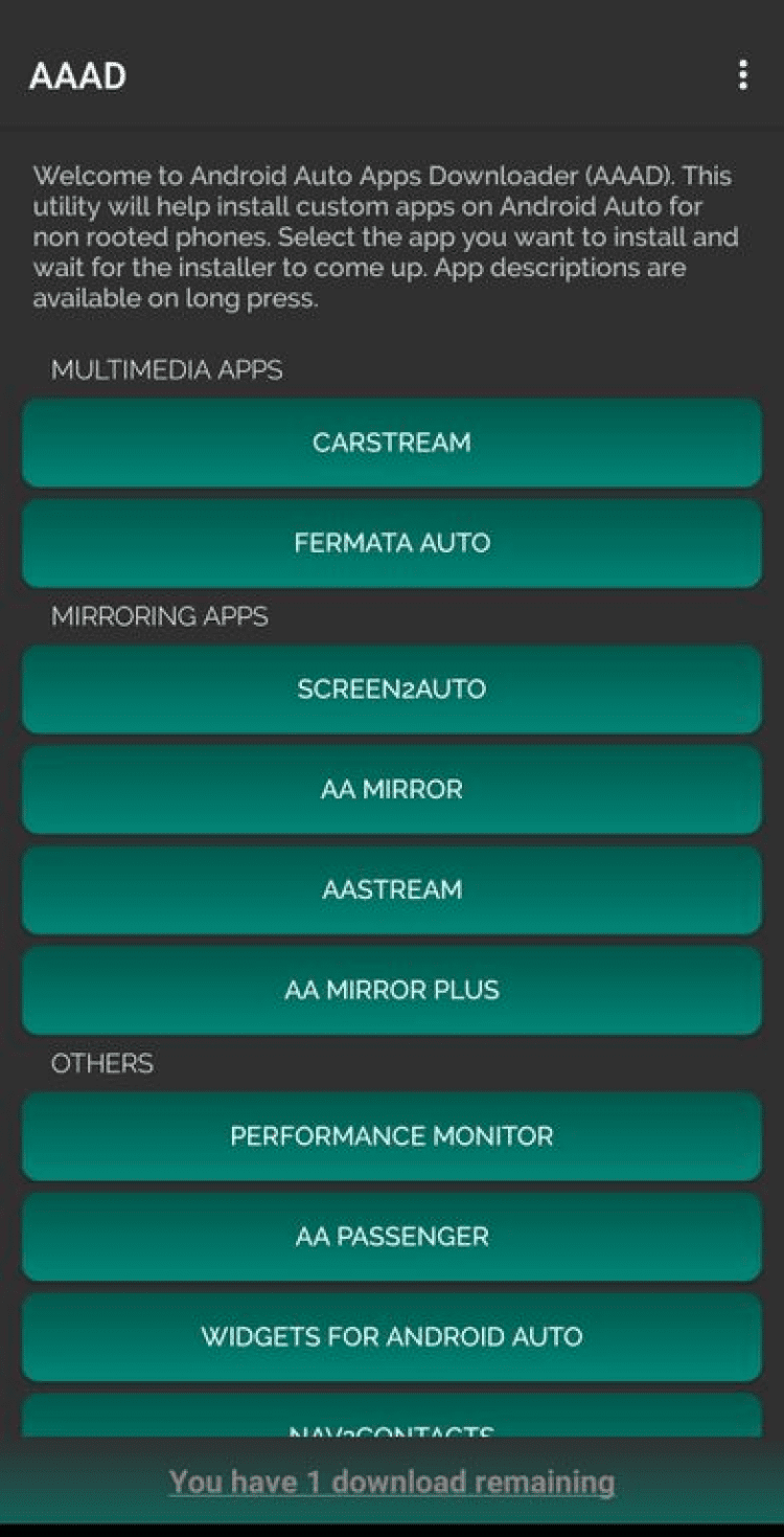 AAAD — это менеджер загрузок, разработанный, чтобы помочь пользователям Android Auto в установке неофициальных приложений.
