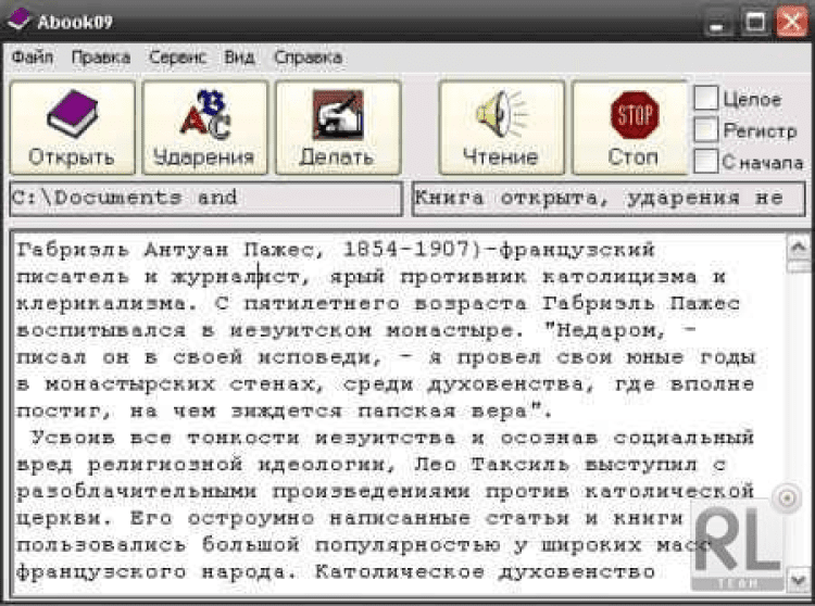 Abook09 - это программа для конвертирования обычного текста в аудио формат MP3. Работает под лучшим на сегодняшний день голосовым движком Acapela ELAN TTS Multimedia 255 (Nicolai 16Khz) версии 5.1, позволяющим записывать с огромной скоростью без потери качества.