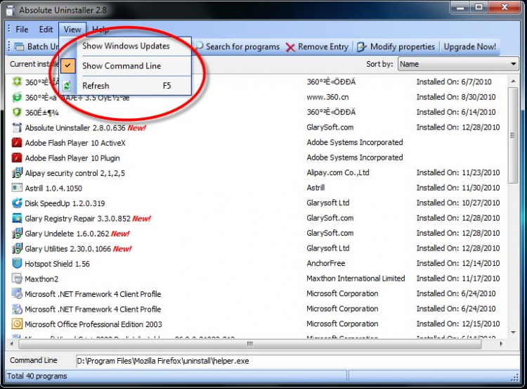 В главное окне Absolute Uninstaller отображается список установленных программ. В этом списке можно узнать версию программы, разработчика и дату установки. Программы можно сортировать по различным параметрам и искать в списке. Чтобы удалить программу достаточно выбрать ее и нажать одну кнопку. Есть возможность пакетного удаления программ.