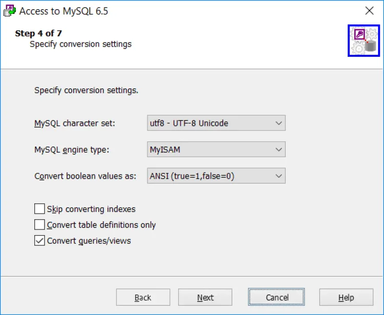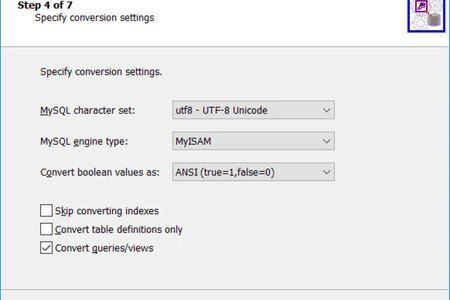 - - сохраняет настройки процесса конвертирования в профайл возможность синхронизировать базу данных MySQL с данными MS Access;