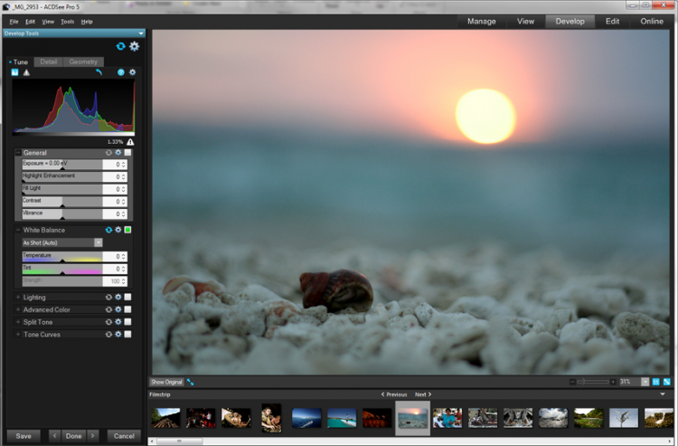 Главный фокус в ней сделан на повышение продуктивности в рабочем процессе. ACDSee Pro предлагает богатый набор инструментов: