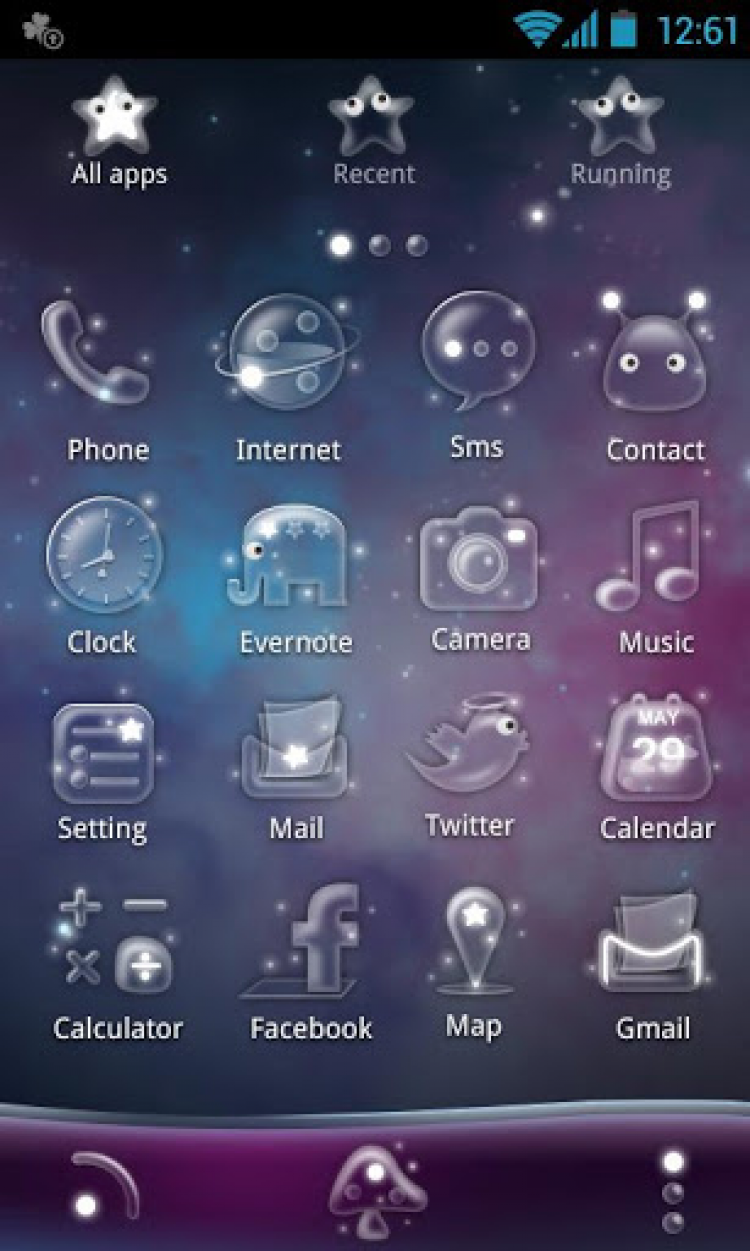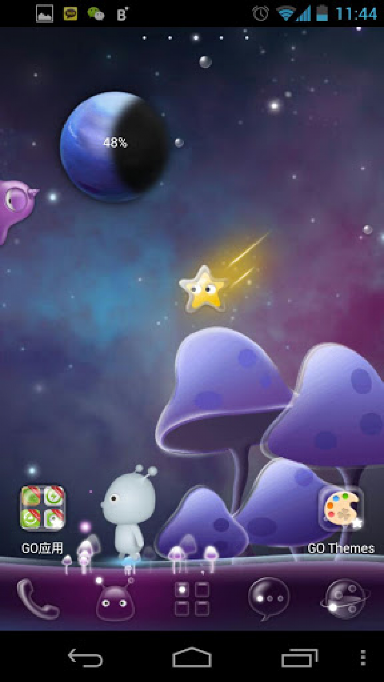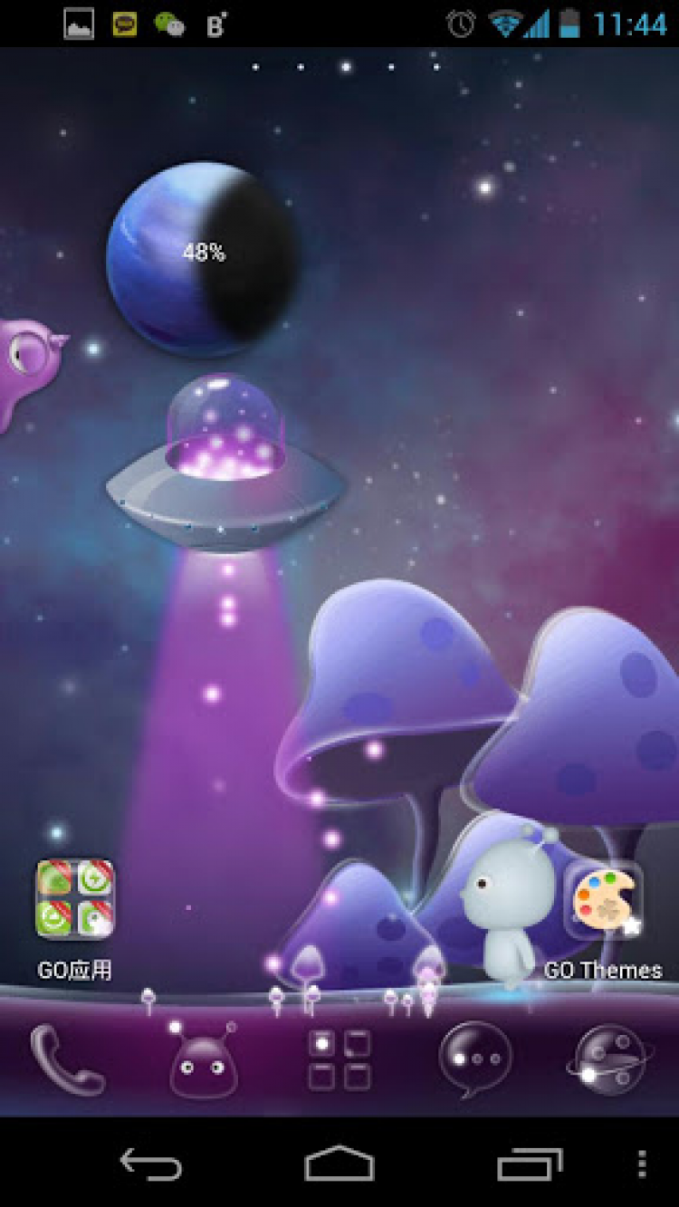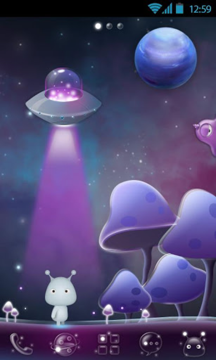 Acid Planet - GO Super Theme Красивая тема оформления для приложения GO Launcher EX версии 3.27 или выше, выполненная в стиле инопланетного мира. Простым встряхиванием устройства вы сможете переключаться между наземным и подводным инопланетным миром.