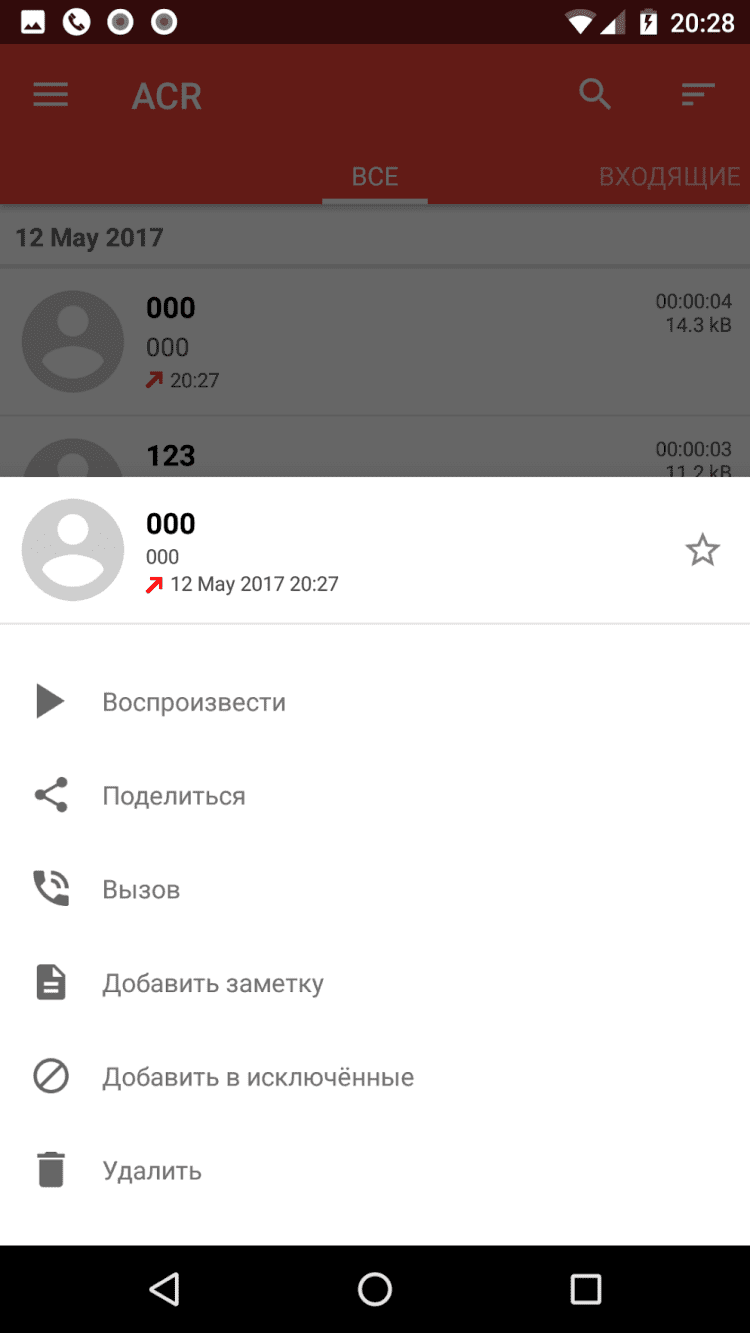 Запись звонков ACR бесплатная версия программы для записи телефонных звонков, предназначенная для Android-устройств. Программа Call Recorder - ACR позволяет группировать записи по дате, маркировать записи как важные и автоматически удалять старые, не помеченные важными, записи. Вы можете настроить автоматическую запись, указать исключенные номера, добавлять фотографию и имя контакта к записи, защищать записи паролем, а так же выбирать формат записи.