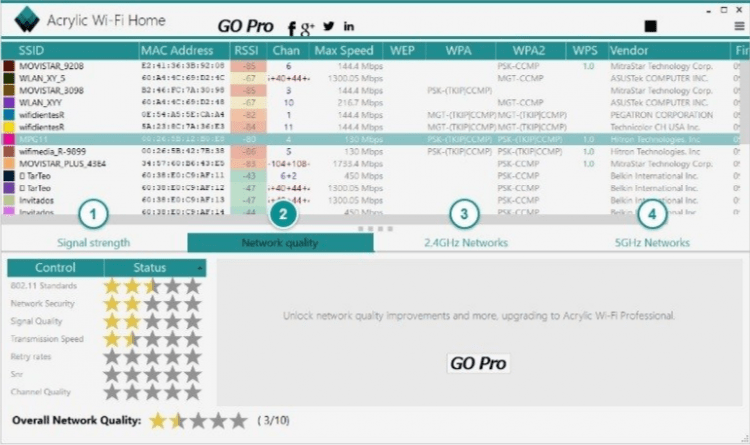Acrylic Wi-Fi Free - это комплексное программное обеспечение, разработанное для мониторинга беспроводных сетей, а также подключенных устройств, получения различной информации о безопасности и инвентаризации собранных данных.