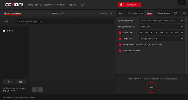 - Записывание фоновых звуков программы или с микрофона.