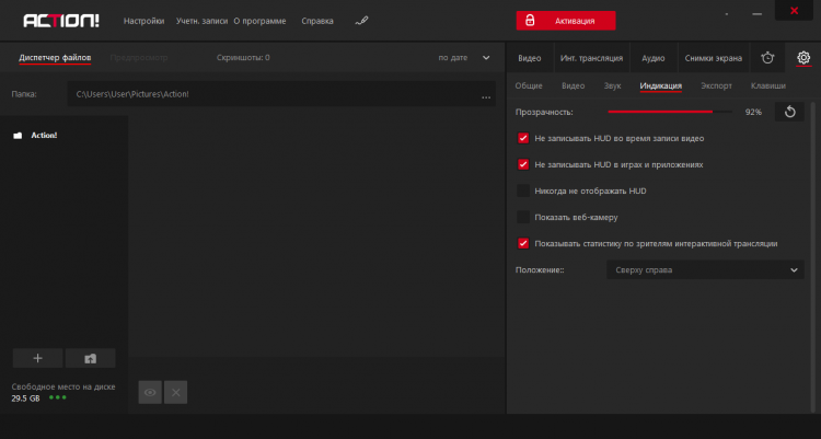 - Запись с минимальным поглощением ресурсов видеокарты и процессора. Решив загрузить Action!, можете не переживать за производительность устройства.