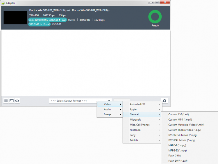 Adapter - это интуитивно понятная программа, предназначенная для конвертирования видео, аудио и изображений. Программа проста в использовании и подходит как для опытных, так и начинающих пользователей. Несмотря на простоту в использовании, это конвертер обладает большим количество функций и настроек, а также имеет встроенный медиа плеер для предварительного просмотра конвертируемых файлов.