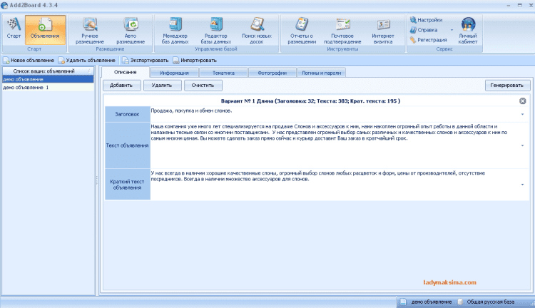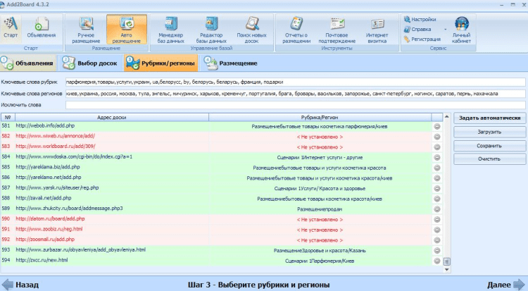 Add2Board – это программа для автоматической интеллектуальной рассылки объявлений на электронные доски объявлений. Доски объявлений - идеальные современные площадки для бизнес-информирования. Аудитория печатных отраслевых каталогов товаров и услуг, универсальных сборников рекламных объявлений уже несколько лет, как переместилась на доски объявлений.