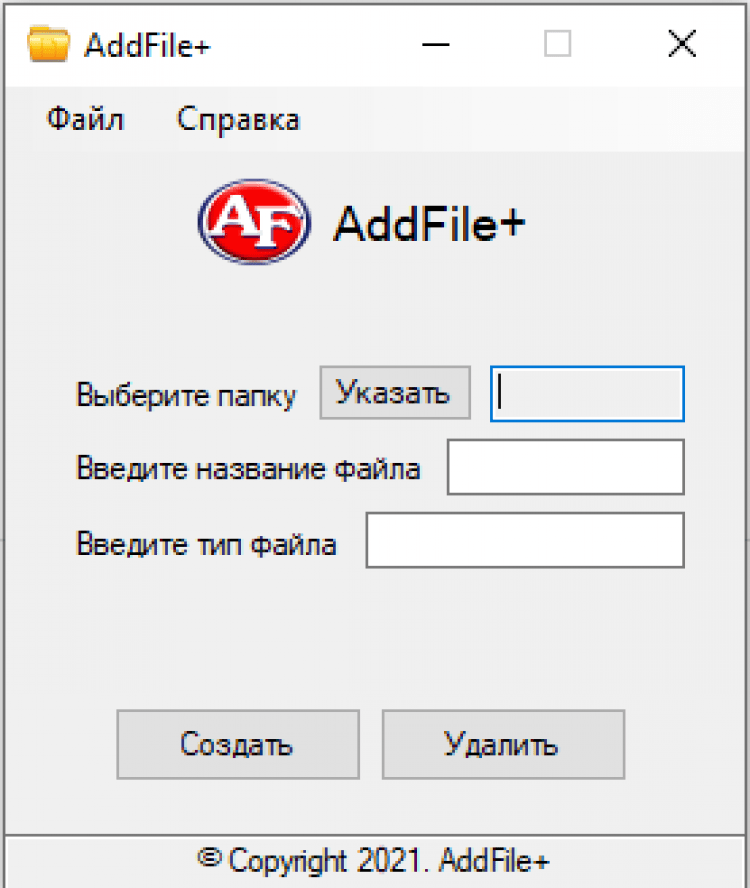 AddFile+ — это утилита, которая позволяет быстро создавать файлы на компьютере в любом расположении, с любым типом (расширением). Так-же в данной утилите можно быстро удалять файлы на компьютере в любом расположении. Программа распространяется бесплатно.