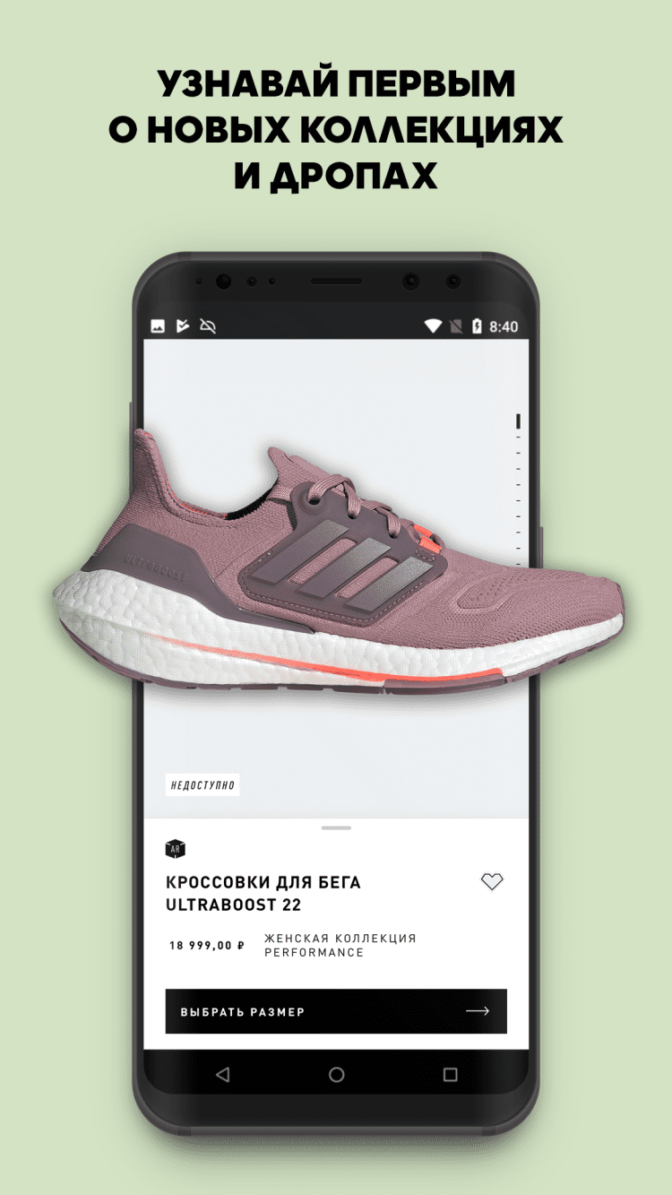 Скачайте бесплатное приложение adidas для Android и получайте эксклюзивные предложения в официальном магазине компании, а также оформляйте заказы, не выходя из дома и отслеживайте статус доставки.