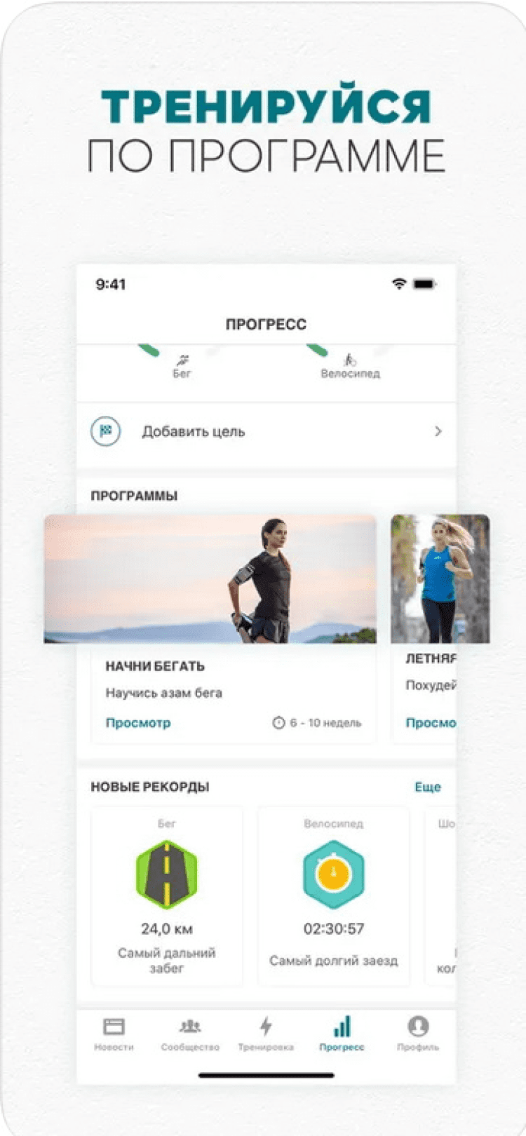 - программы тренировок, адаптированные под ваш уровень подготовки;
