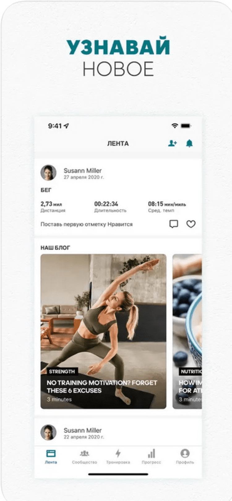 - получение сообщений от сообщества во время тренировок в режиме реального времени;