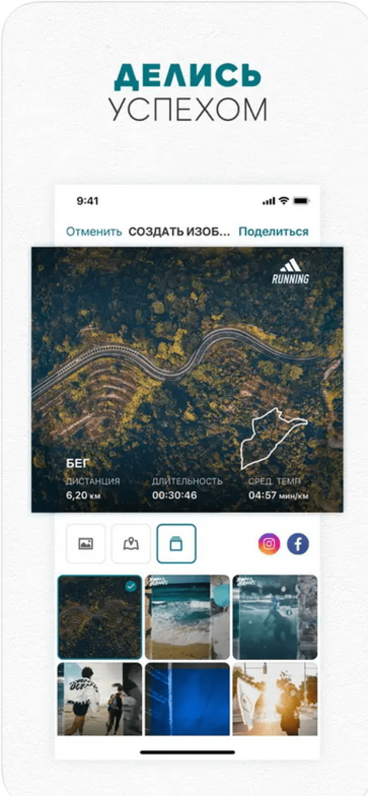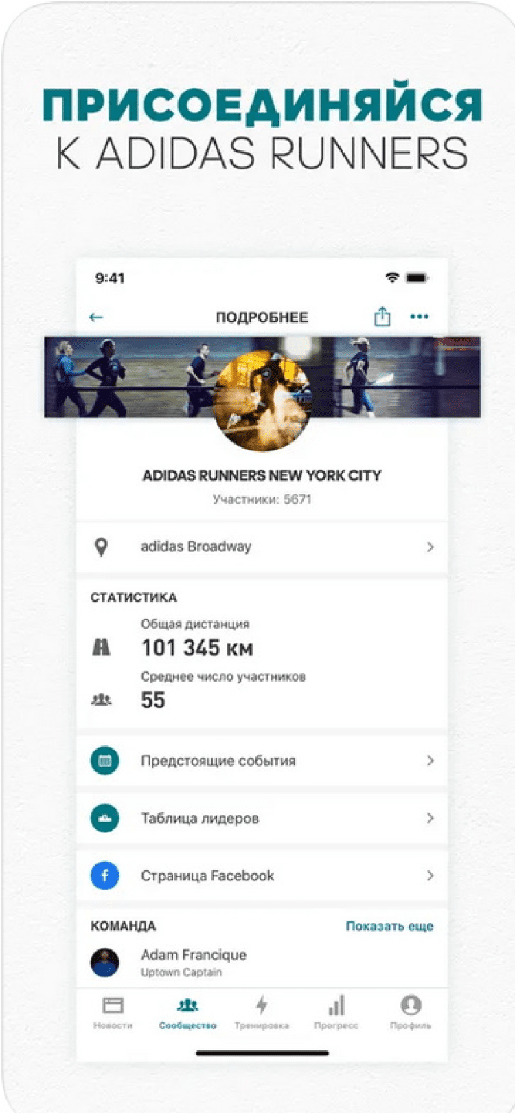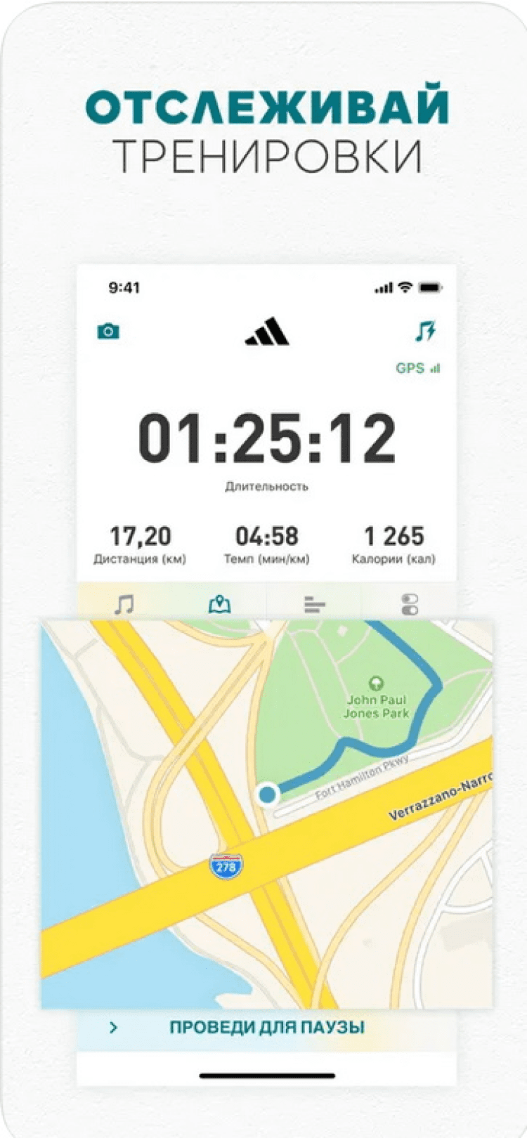 adidas Running by Runtastic — приложение для бега. Позволяет отслеживать ваши показатели, пройденную дистанцию, время и скорость бега, подъём, израсходованные калории и многое другое. Сохраняет статистику на смартфоне для отслеживания результатов ваших тренировок.