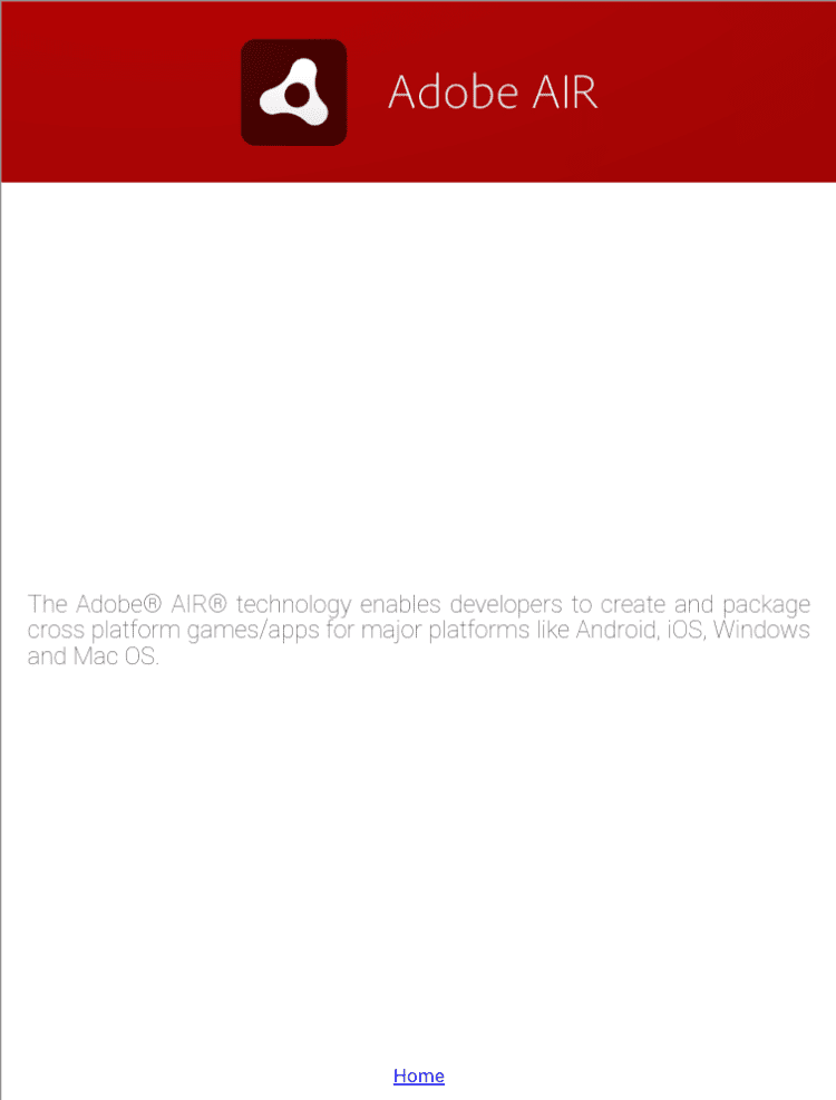 Среда для запуска и переноса приложений, в том числе и Rich Internet Applications, на мобильные устройства, используя HTML/CSS, Ajax, Adobe Flash и Adobe Flex, разработанная компанией Adobe. Программа поддерживает технологию drag and drop, работу с несколькими окнами одновременно, работу с буфером обмена, а так же имеет доступ к файловой системе. Ещё одной полезной функцией Adobe AIR является возможность переноса готовых HTML или Flex приложений с мобильных устройств на настольные компьютеры.