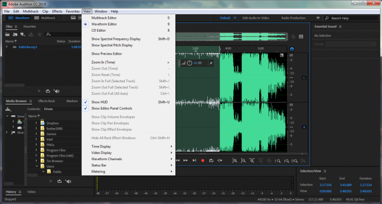 Интерфейс Adobe Audition CC продуман до мелочей, и предоставляет удобный и быстрый доступ ко всем нужным инструментам, позволяет управлять и загружать медиафайлами, и настраивать рабочую среду под конкретные нужды.
