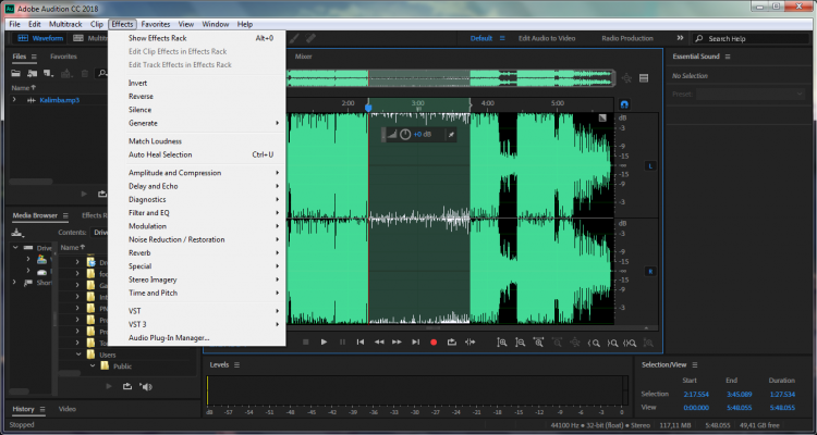 Записывать звук с помощью Adobe Audition CC тоже просто, благодаря встроенному метроному - утилите, которая обеспечит точные тайминги. Многополосный компрессор позволяет контролировать различные параметры аудио файла, включая громкость и динамику, с высокой точностью. Используя Spectral Frequency Display, можно полностью убрать из трека посторонние шумы, с помощью Adaptive Noise Reduction просто приглушить их.