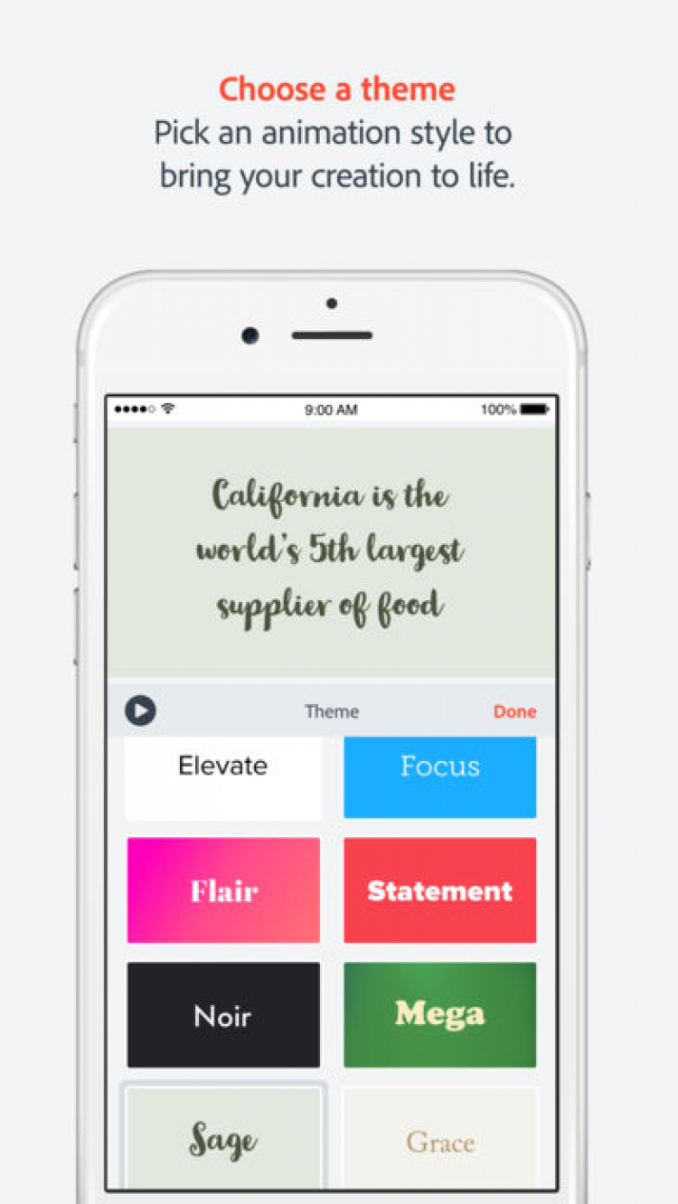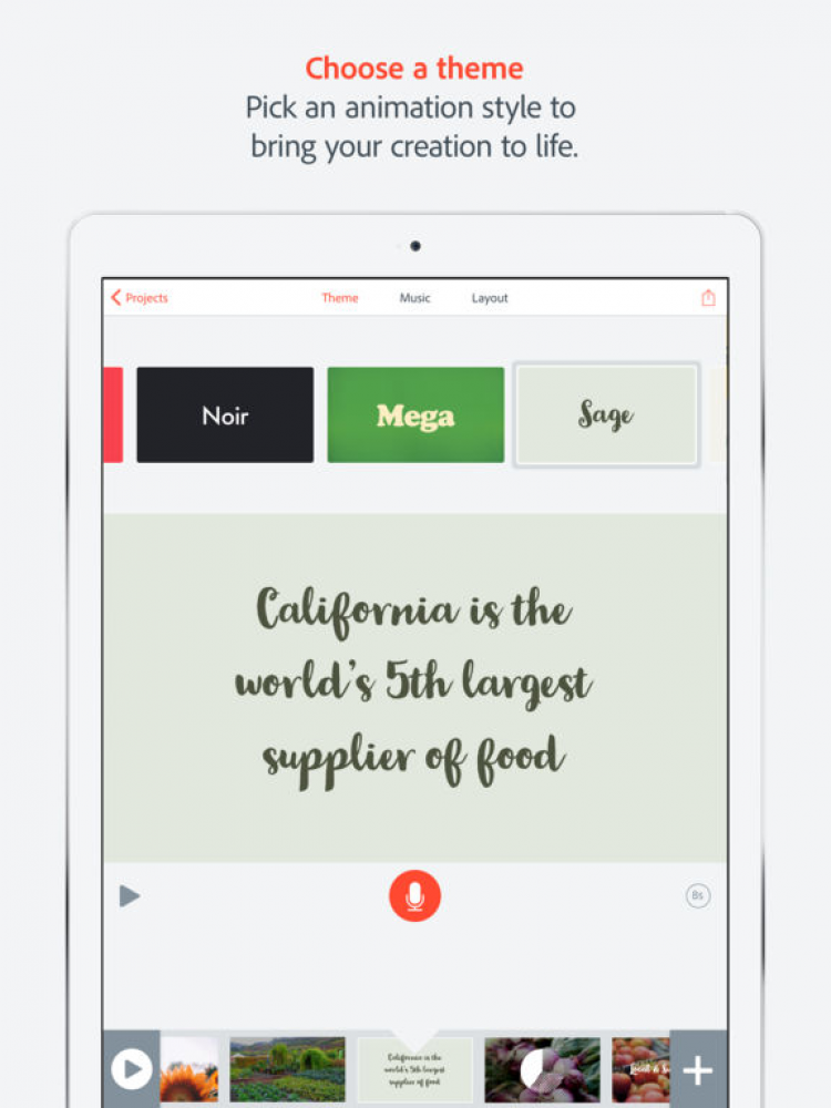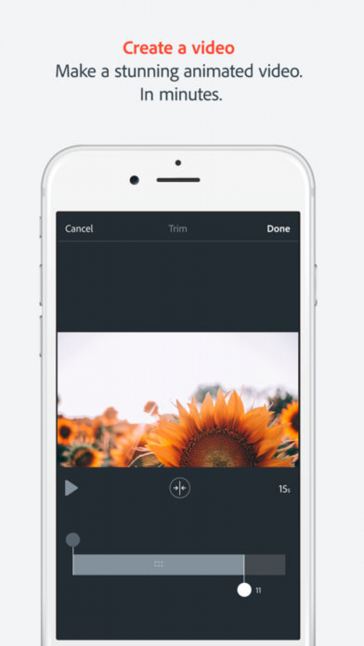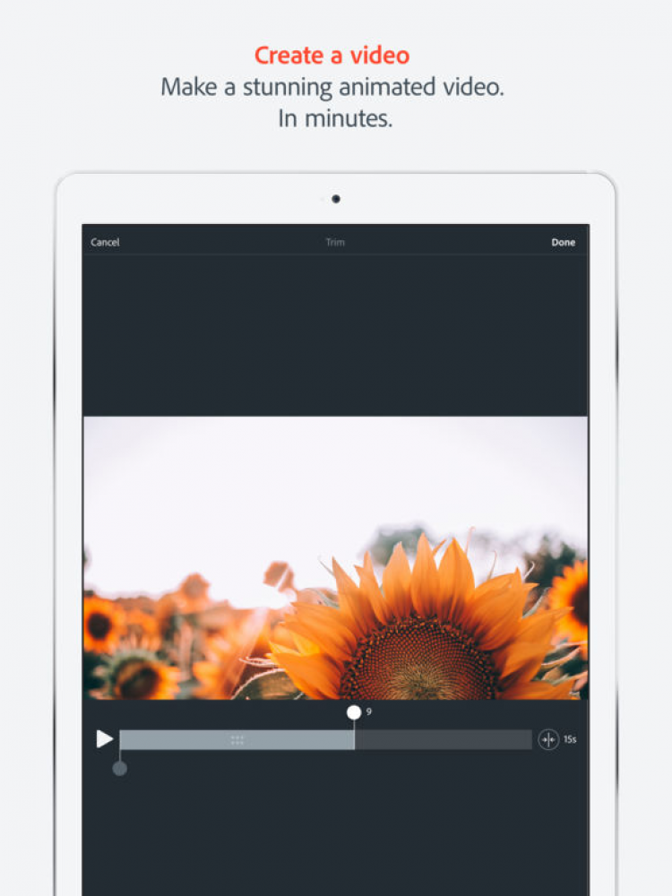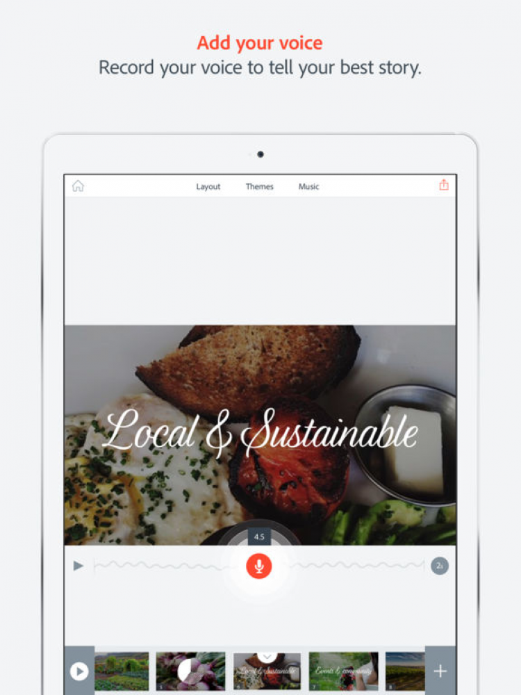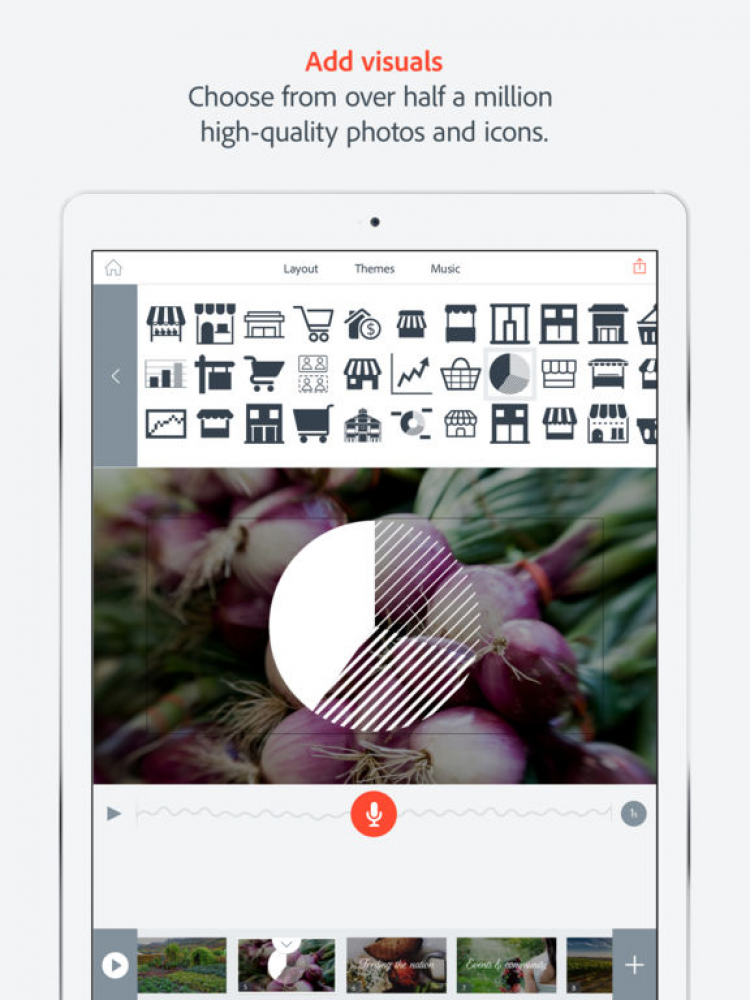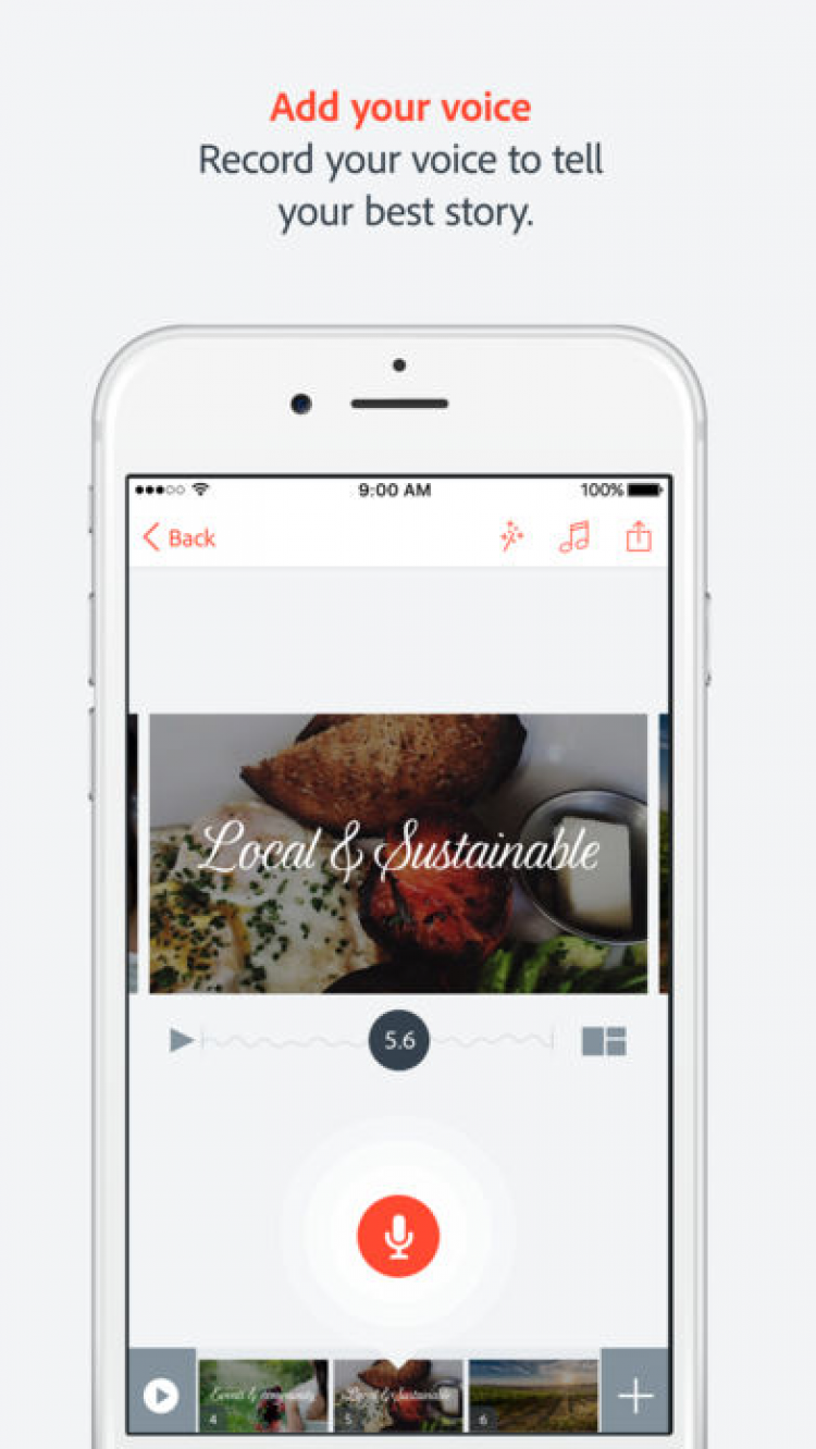 Это приложение позволит вам создавать анимированные видео в считанные минуты. Просто выберите любое из 25000 красивых изображений, отражающих суть желаемых видео, а затем начните свое повествование, а приложение Adobe Voice автоматически добавит эффект движения и саундтрек. Благодаря этому приложению, вы сможете создавать высококачественные видео, сохранять их в галерее устройства или делиться ими с друзьями через Facebook, Twitter, по электронной почте, либо загружать на собственную веб-страницу.
