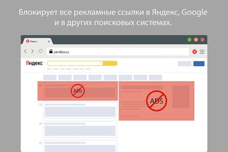- Блокирует всю рекламу, включая видеорекламу, всплывающие , баннеры и текстовые объявления;