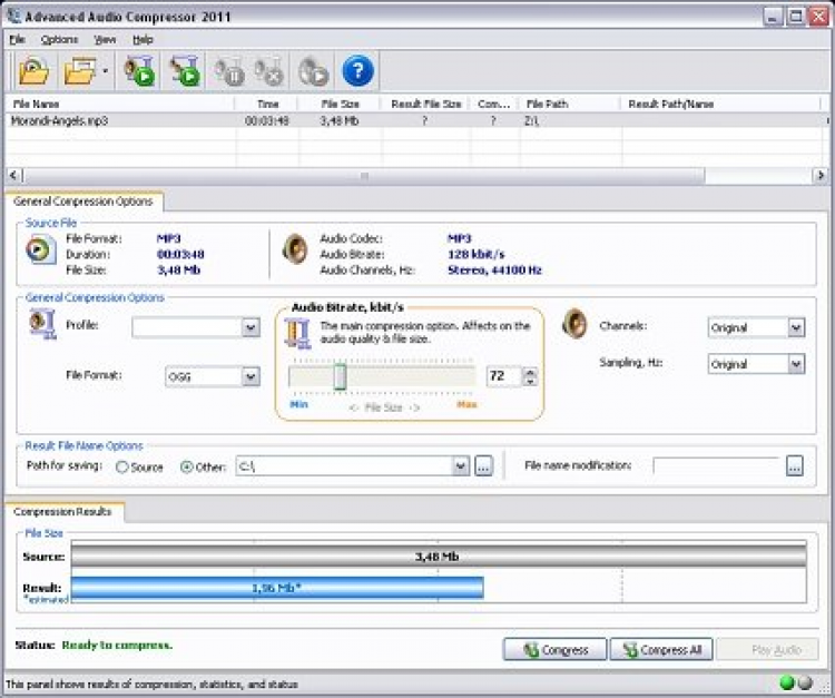 Advanced Audio Compressor - это программа для сжатия аудио файлов в различных форматах. С ее помощью можно значительно уменьшить размер файла, что может быть полезно, например, если необходимо загрузить его в сеть.