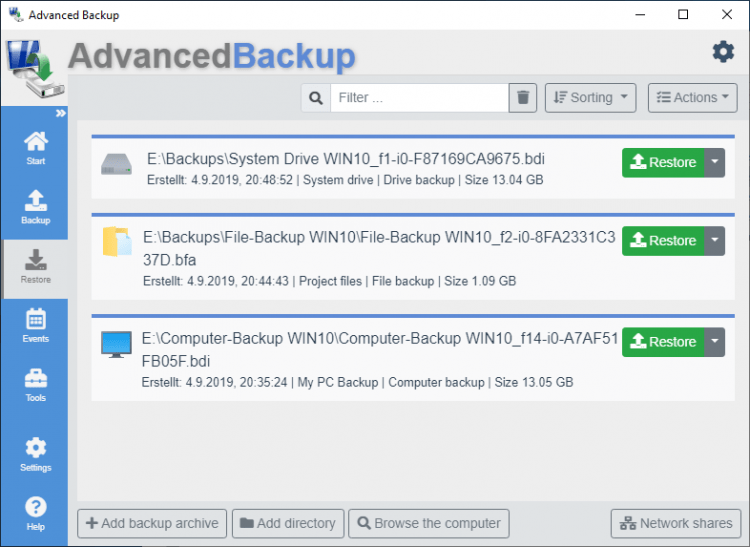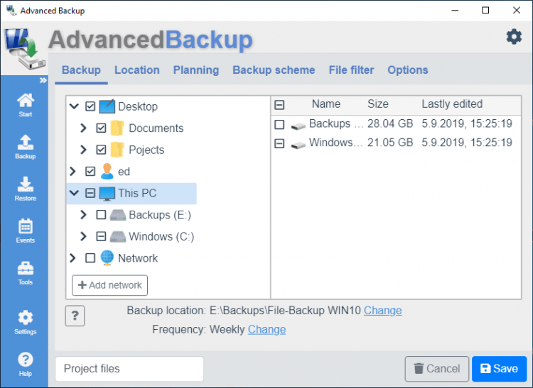 Advanced Backup - это бесплатная версия программы, предназначенной для резервного копирования.