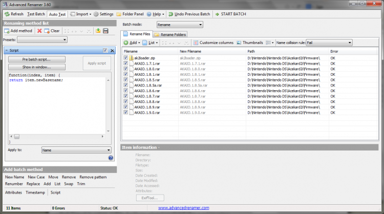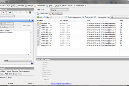 Advanced Renamer это комплексная утилита, которая позволяет выполнять переименовывать используя простые или сложные схемы. Она позволяет создавать совершенное новые файлы и изменять старные. Для переименования файов она использует теги, шаблоы и скрипты. Вы можете самостоятельно создавать и сохрнять шаблоны для переименования.