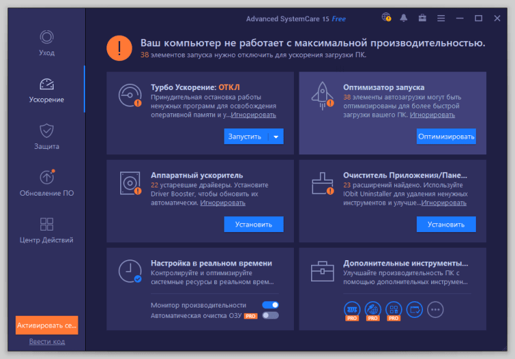 Advanced SystemCare Free - это мощная, универсальная программа, предназначенная для увеличения производительности компьютера и исправления ошибок, которые неизбежно возникают в процессе работы ОС. С помощью этой программы вы сможете всего одним нажатием провести диагностику компьютера и устранить проблемы.