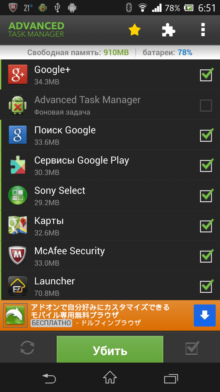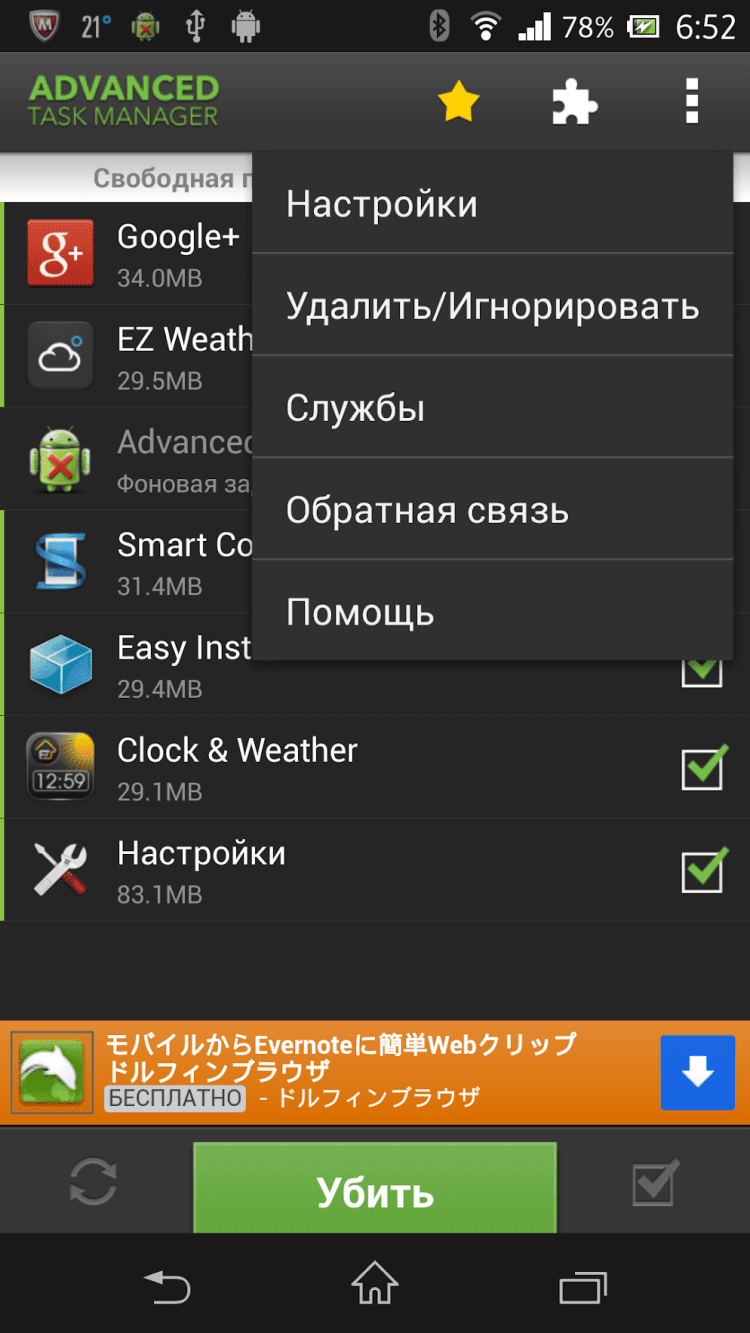 Advanced Task Manager Мощный и удобный менеджер задач для мобильных устройств под управлением ОС Android. С помощью этой программы вы сможете улучшить производительность своего устройства и продлить срок службы батареи. Вы сможете завершать ненужные процессы вручную, а так же настроить автоматическое завершение процессов при включении устройства, включении экрана, либо по расписанию. Так же, вы сможете быстро завершать работу GPS-модуля вашего устройства.