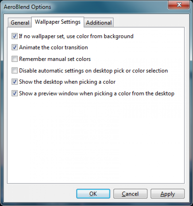 AeroBlend - это программа, которая меняет цветовое оформление Windows 7 или 8 в зависимости от окружающих факторов. Она имеет два режима. Один изменяет цветовую тему в тон фону рабочего стола.