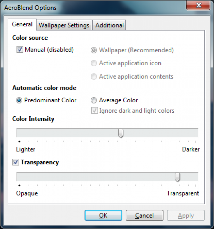 Неважно, меняете ли вы фон вручную или используете функцию слайд-шоу, цвет будет меняться в соответствии с ним. Другой режим AeroBlend также меняет цвет, но уже в зависимости иконки или содержимого активного окна, или же вручную выбранного цвета.