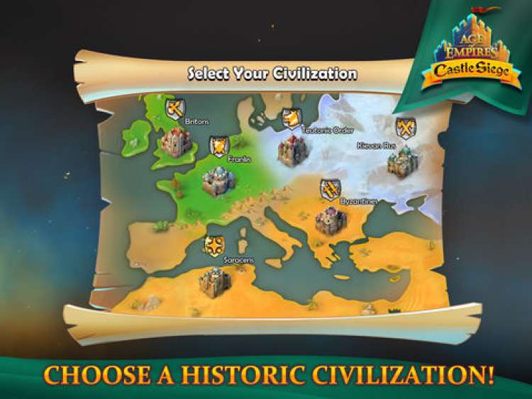 В игре Age of Empires: Castle Siege присутствует несколько цивилизаций. Для выбора доступны бриты, франки, тевтонцы, сарацины, византийцы и Киевская Русь. Каждая из цивилизаций имеет собственную архитектуру, а также уникальных героев и юнитов.