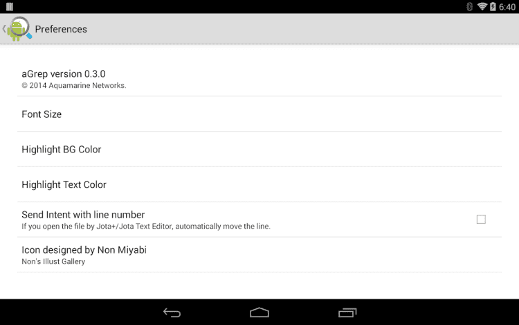 aGrep Бесплатная программа для поиска текста на вашем мобильном устройстве. Обладает открытым исходным кодом. Выберите путь поиска и фразу, которую хотите найти и программа проведет сканирование вашего устройства и SD-карты и отобразит все результаты.