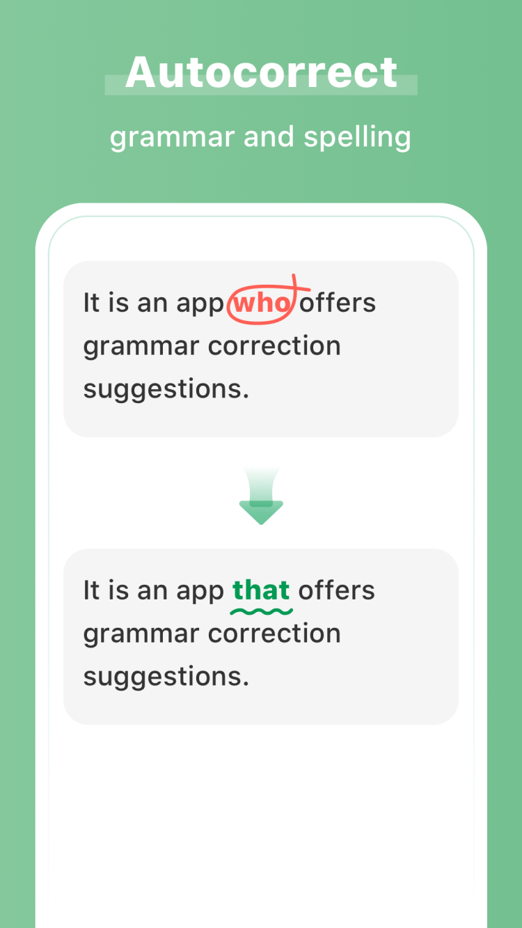 AI Grammar Checker for English предлагает простой способ избавиться от опечаток, а также грамматических или орфографических ошибок и исправить их одним нажатием. Отлично подойдет тем, кто только начал изучать английский язык, благодаря подробным объяснениям каждой ошибки.