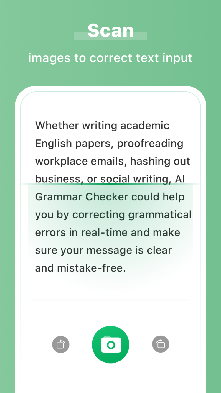Еще одним важным преимуществом AI Grammar Checker for English APK является возможность работы не только с текстом, напечатанным на смартфоне, но и с оцифрованными документами. Для этого программа предлагает встроенный сканер документов. Сохраните копию бумажного документа на своем смартфоне и проверьте его на наличие ошибок всего за несколько нажатий.