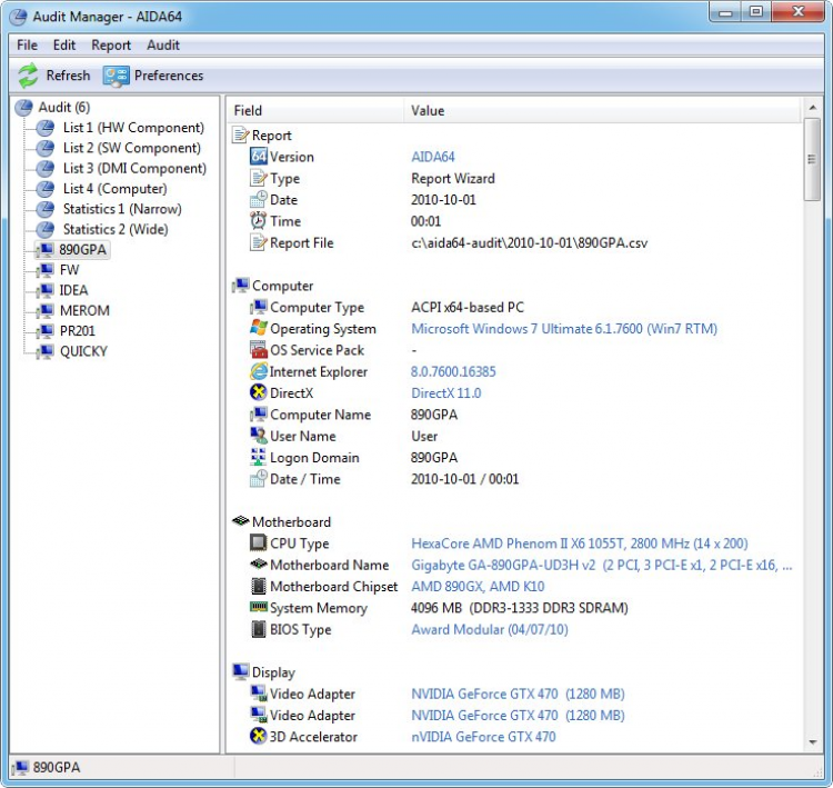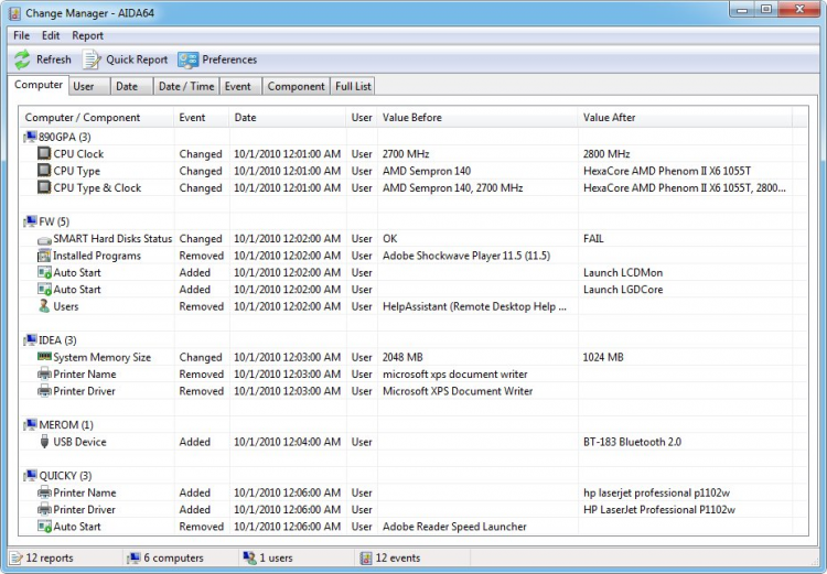 С помощью AIDA64 Business Edition можно автоматизировать процесс сбора информации об аппаратной и программной части компьютеров в локальной сети с помощью командной строки. Собранная информация о каждом компьютере может быть импортирована в CSV или XML файлы, или в базу данных SQL. Вся собранная информация обрабатывается в AIDA64 Audit Manager. Кроме того, в программе имеется AIDA64 Change Manager, который отслеживает состояние аппаратной и программной части компьютеров в сети, и в режиме реального времени уведомляет, если были совершены какие-либо изменения. Он также может сообщить, заканчивающемся свободном месте на жестком диске, или о необходимости обновить антивирусные базы.