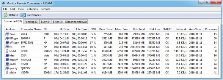 Есть в AIDA64 Business Edition и функции для удаленного управления, мониторинга и диагностики сетевых компьютеров. С их помощью можно следить за состоянием компьютера и решать различные проблемы как программного, так и аппаратного характера.