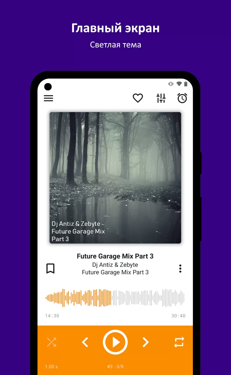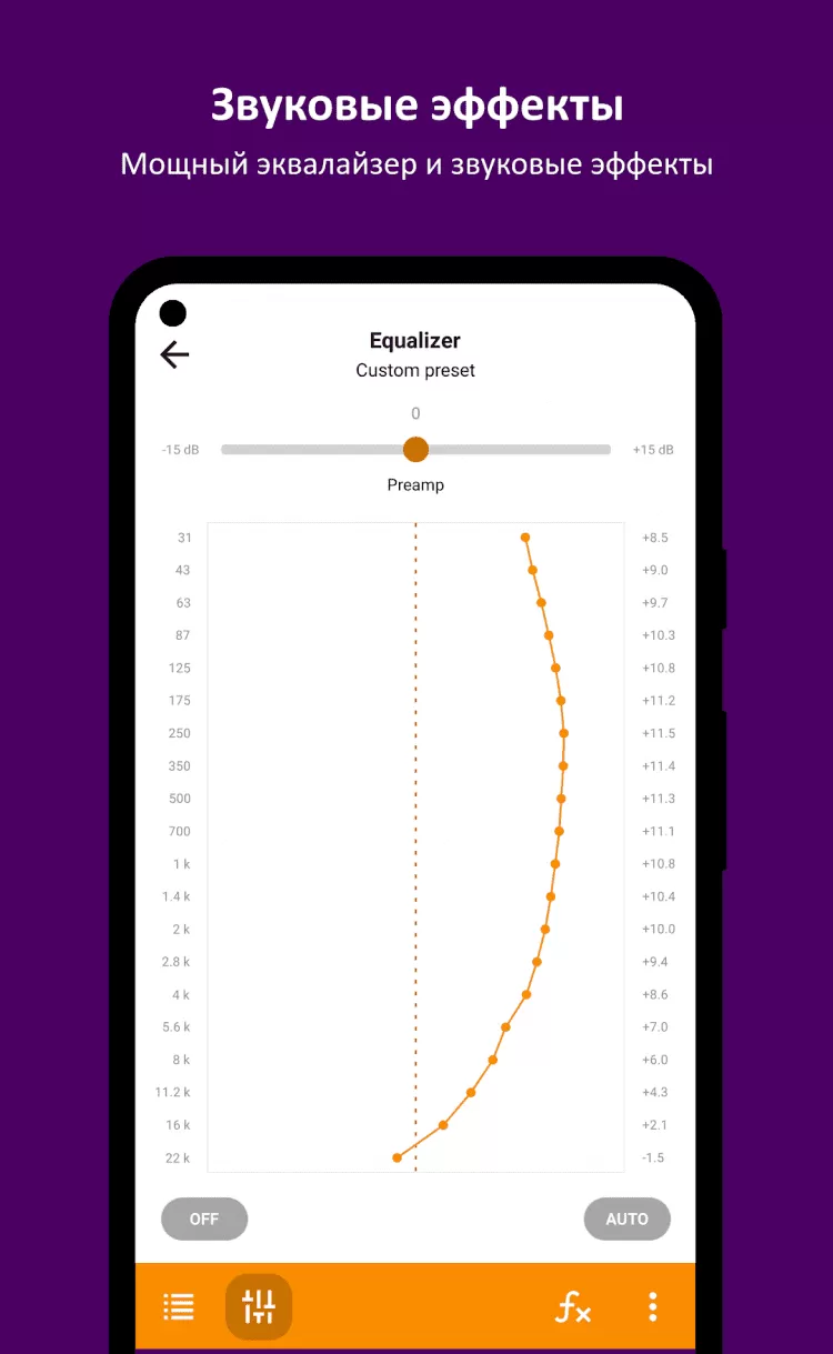 Мобильная версия популярного музыкального проигрывателя AIMP. Эта программа поддерживает воспроизведение музыки в форматах .ape; .mpga; .mp3; .wav; .ogg; .umx; .mod; .mo3; .it; .s3m; .mtm; .xm; .aac; .flac; .mp4; .m4a; .m4b; .mpc; .wv; .opus и прочих. Так же, AIMP поддерживает CUE, включает в себя 8-ми полосный эквалайзер, позволяет автоматически определять кодировки данных в тегах, отображает обложки альбомов из тегов или папки с музыкальными файлами, позволяет добавлять файлы или папки в список воспроизведения, быстро добавлять все музыкальные файлы с SD-карты, повторять воспроизведение всего списка или отдельных треков, воспроизводить файлы по порядку или вразнобой, а так же управлять воспроизведением с гарнитуры, виджета с экрана блокировки или рабочего стола.