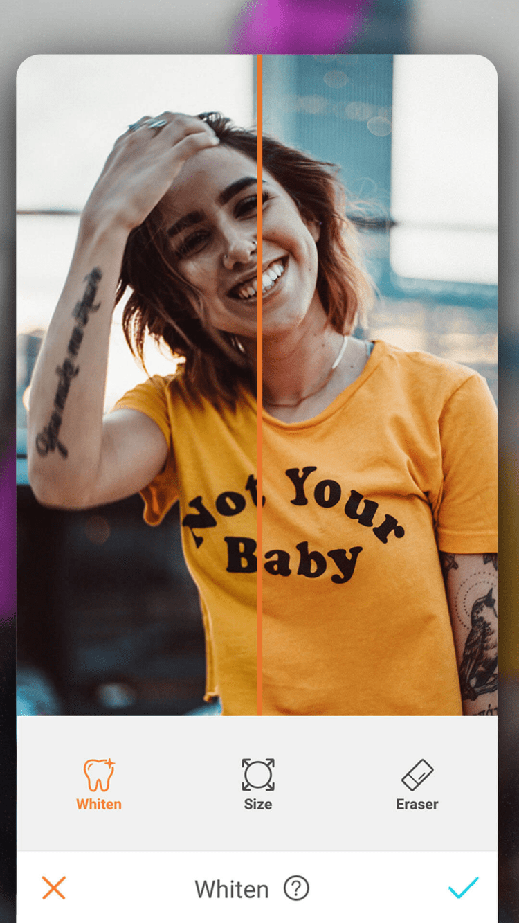 - голливудская улыбка. Сделайте зубы белее, а также визуально сделайте губы более пухлыми, либо расширяйте или сдвигайте улыбку, без каких-либо усилий;