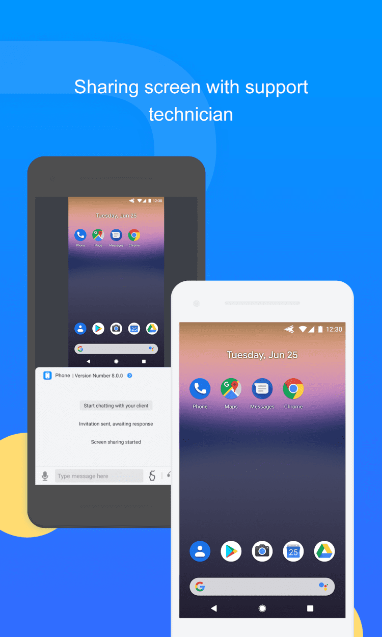 Это приложение избавит вас от необходимости нести телефон в сервис или показывать его специалистам каждый раз, когда что-нибудь в нем начинает работать не так, как хотелось бы. Решение технических проблем и настройка ПО теперь займет совсем немного времени. Все, что для этого потребуется, это установить прямое соединение со специалистом или коллегой и воспользоваться функцией демонстрации экрана. Это поможет наглядно показать, в чем заключаются сложности, что поможет в разы ускорить их решение. В состав приложения входит удобный текстовый чат и инструмент для осуществления голосовых звонков, для комфортного обсуждения и решения возникших вопросов. Не можете разговаривать? Не проблема. Сотрудник технической поддержки может пошагово демонстрировать порядок действий для устранения неполадок, чтобы вы могли без труда устранить их самостоятельно. Установить удаленное соединение очень просто: